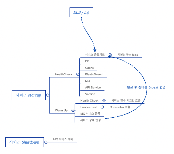 ApplicationReadyEvent 발생 시 서비스 관련된 부분(DB, Cache, Elastic Search, MQ 등)의 상태를 확인합니다.